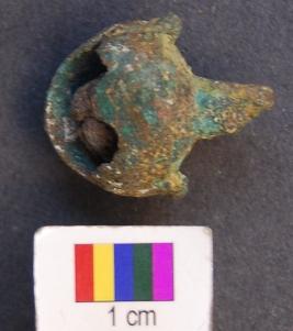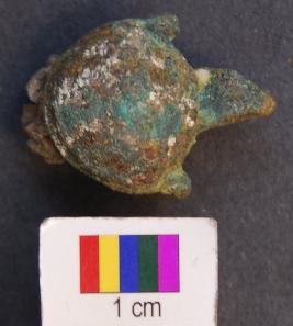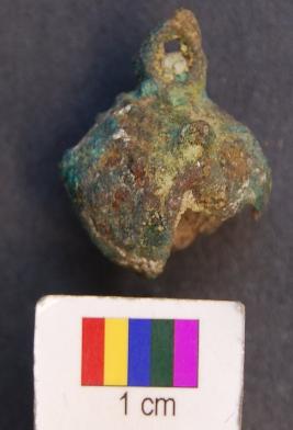 | Description / विवरण | It is circular hollow ball like object with three knobs. It is slightly broken. It looks like ghunghru. |