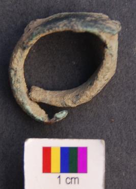 | Description / विवरण | It is a finger ring with wide and flat frontal area. Its arms thin down gradually and blunt at the end. |