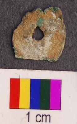 | Description / विवरण | It is fragment of an object made out of a sheet of copper and has a perforation. |