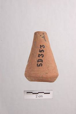 | Description / विवरण | cone shape object with round flat base. Object is broken in middle. Few round lines are depicted just above the base. Base has tiny hole |