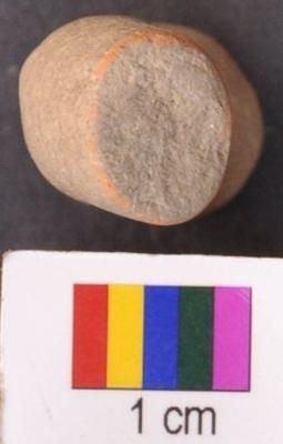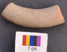 | Description / विवरण | It is a curved fragment of a terracotta bangle with thick section and round body. It has nacreous appearance. |