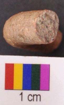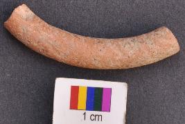 | Description / विवरण | It is small fragment of a terracotta bangle with thick section and round body. It has slanting grass marks on the inner face. |