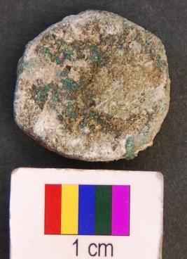 | Description / विवरण | It is a copper coin on the surface of which copper sulphate is leached out. Therefore nothing is visible. |