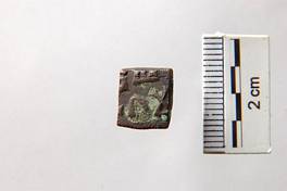 | Description / विवरण | Obverse- Traces of a railing above, legend Na game in the Brahmi characters of c. 3rd century A.D..Reverse- Swastika. |