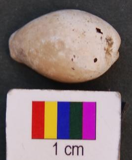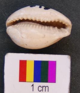 | Description / विवरण | It is a cowrie shall with two small perforations. It was perhaps used as a bead. |