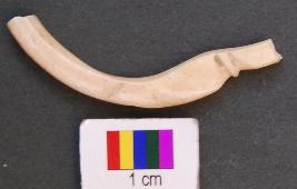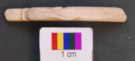 | Description / विवरण | It is a fragment of a shell bangle with rectangular section. It has a petal like decoration on the outer surface. |