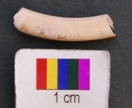 | Description / विवरण | It is a fragment of a shell bangle with squarish section. Its edges are blunt eventually giving circular impression of the body. |