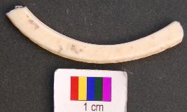 | Description / विवरण | It is a fragment of a shell bangle with wide facetted dorsals and rectangular section. Its edges are blunt. There is a set of small slanting parallel grooved lines on the outer surface bordered by two parallel lines. |