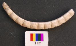 | Description / विवरण | It is a fragment of a shell bangle with thick body and rectangular section. The outer face is carved in serpentine pattern. |