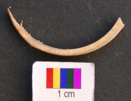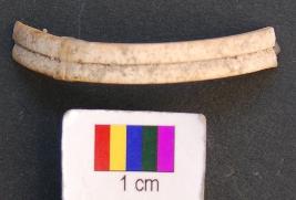 | Description / विवरण | It is fragment of a ivory bangle with thin body and a grooved line on the outer surface. |
