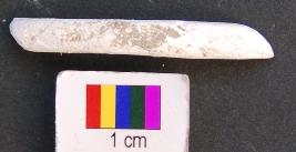| Description / विवरण | It is fragment of a shell bangle with thin body and faceted inner face and swollen outer one. It has weathered surface. |