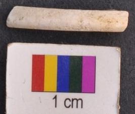 | Description / विवरण | It is a fragment of a shell bangle with squarish section and circular in appearance on the external face. |