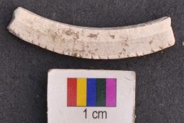| Description / विवरण | It is a fragment of a shell bangle with rectangular section and thin body. Its external face was decorated with grooved lines. |