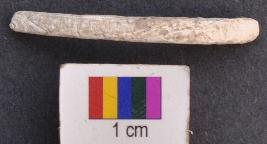 | Description / विवरण | It is fragment of a shell bangle with squarish section and thin body. It is weathered. |