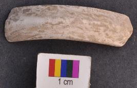 | Description / विवरण | It is a fragment of a shell bangle with chevron pattern section. The external face has prominent ridge. |