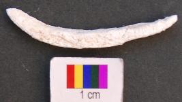 | Description / विवरण | It is fragment of a shell bangle with thin and facetted body. It is weathered and gives white powdered material while rubbing the surface. |