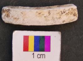 | Description / विवरण | It is fragment of a shell bangle with rectangular section and facetted body. It is weathered and gives white powdered material while rubbing the surface. |