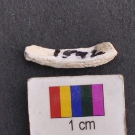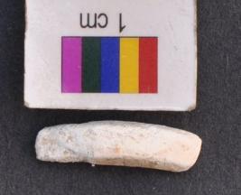 | Description / विवरण | It is a fragment of a small shell bangle with thin body and oval section. It is weathered. |