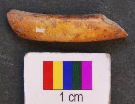| Description / विवरण | It is a fragment of bone bangle with facetted inner face and rectangular section. Its outer face is slightly bulging with blunt edges. |