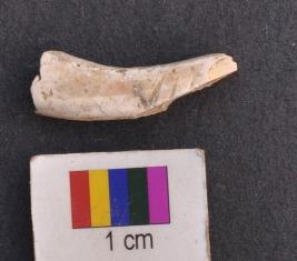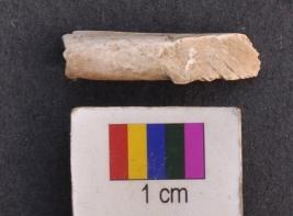 | Description / विवरण | It is fragment of a shell bangle with facetted body and roughly rectangular section. The dorsal side of the body is decorated with grooved slanting set of lines. |