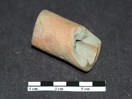 | Description / विवरण | Terracotta cylindrical bead, red colour. |