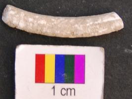 | Description / विवरण | It is a fragment of a shell bangle with thin body and squarish section and weathered surface. |