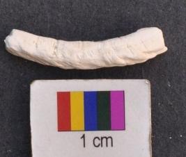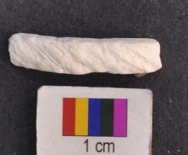| Description / विवरण | It is fragment of a shell bangle with facetted body and squarish section. It is decorated with slanting grooved parallel lines on the external surface. It is weathered. |