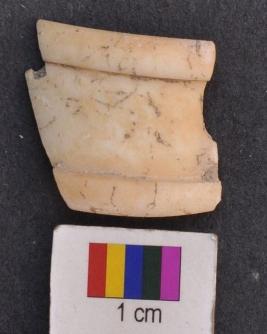 | Description / विवरण | It is fragment of a shell bangle with wide sheet like body and pronounced on external ends, which has rim like appearance. |
