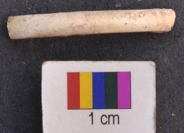 | Description / विवरण | It is a small shell bangle fragment with roughly circular in section. |