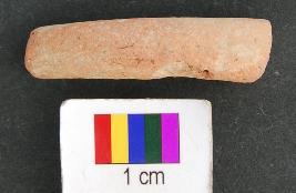 | Description / विवरण | It is a fragment of terracotta bangle with thin body and round section. Its thickness is uneven. |