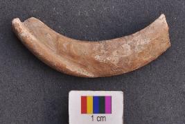 | Description / विवरण | It is a fragment of a shell bangle, which is reasonably thick in section and flatish on either sides. |