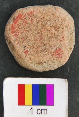 | Description / विवरण | It is a small terracotta disc with thin body and irregular edges. It is black on one side and has traces of red slip on the other. |