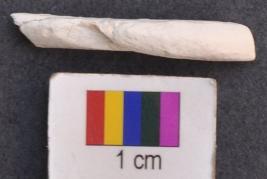 | Description / विवरण | It is a fragment of shell bangle, which is patinated and has rectangular section. |