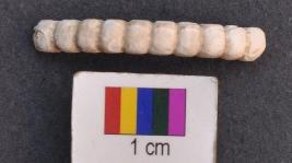 | Description / विवरण | It is small fragment of a shell bangle with grooved decoration on the external face. The grooved lines give appearance of beaded decoration. |