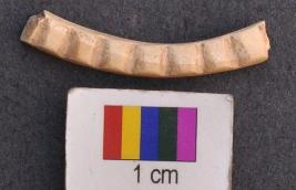 | Description / विवरण | It is small fragment of a bangle, the dorsal sides of which have prominent grooved lines forming a wavy pattern on the external face of the bangle. It looks impressive. |