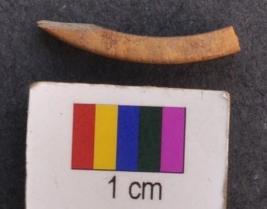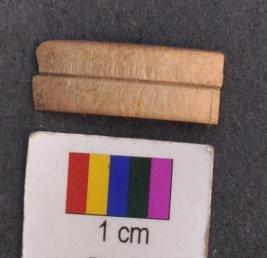 | Description / विवरण | It is fragment of an ivory bangle with wide body and a grooved line on the external part perhaps running all along. |