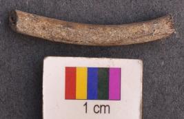 | Description / विवरण | It is fragment of a bone bangle with squarish section and blunt edges. It has a perforation in the core of the body. |
