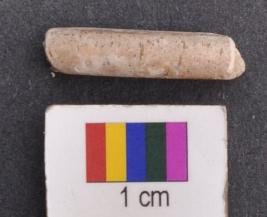 | Description / विवरण | It is fragment of a shell bangle with facetted body and squarish section. Its out face is round in appearance. |
