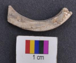 | Description / विवरण | It is fragment of a shell bangle with facetted body and rectangular section. It is weathered and cracks have developed in its body. |