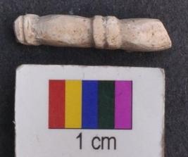 | Description / विवरण | It is fragment of a shell bangle with thin facetted body and rectangular section. Its outer face is decorated by a set of two parallel prominent ridges. Perhaps this kind of decoration was done all along the outer face. |