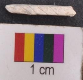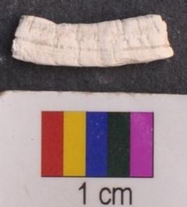 | Description / विवरण | It is fragment of a small shell bangle with facetted and thin body. It is weathered. |