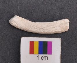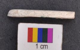 | Description / विवरण | It is fragment of a shell bangle with facetted body and rectangular section. It gives white powdered material while rubbing. |