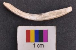 | Description / विवरण | It is fragment of a shell bangle with thin body and weathered surface. |