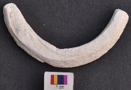 | Description / विवरण | It is fragment of one of the largest shell bangles discovered at Kanmer. It has facetted body. It is weathered and gives white powdered material while rubbing the surface. |