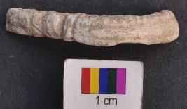 | Description / विवरण | It is fragment of a shell bangle with thin body. On its outer surface is made grooved decoration. It is weathered and gives white powdered material while rubbing. |