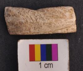 | Description / विवरण | It is fragment of a shell bangle with facetted and thick body. It is triangular in section. Its mid rib is quite prominent. |