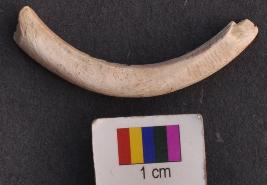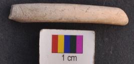 | Description / विवरण | It is fragment of a shell bangle with facetted body and squarish section. Its outer face, being blunt on edges, has round appearance. |