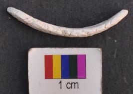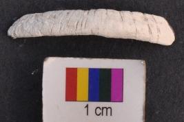 | Description / विवरण | It is fragment of a shell bangle with sheet like thin body and weathered surface. |
