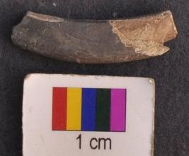 | Description / विवरण | It is fragment of a shell bangle with facetted body and squarish section. It seems to be part of a bangle piece numbered as 735c. |