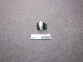 | Description / विवरण | Fragment of stone agate bead, drum shaped, black and white bands, broken horizontly half part. |